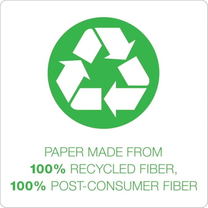 - Paper made from 100% recycled fiber with 100% post-consumer fiber