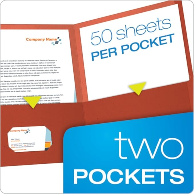 - Twin pocket folders store up to 100 sheets of paper (50 per pocket)