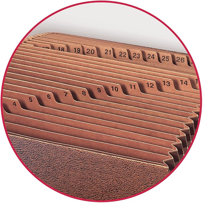 - Includes 1 legal size (15" W x 10" H) expanding file featuring 31 pockets with daily (1-31) indexing for organizing, storing and transporting important files; tax filing essentials that will make your tax season stress-free and organized
