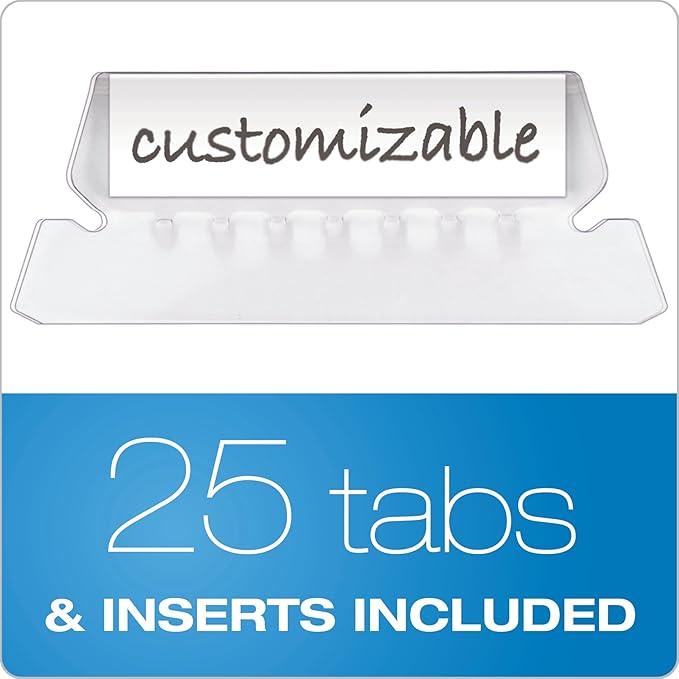 - Includes printable label sheet and 25 clear 1/5-cut tabs