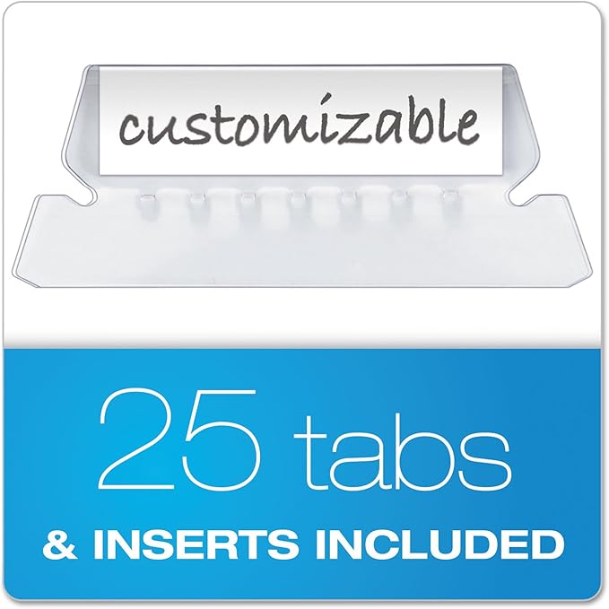 - Includes printable label sheet and 25 clear 1/5-cut tabs