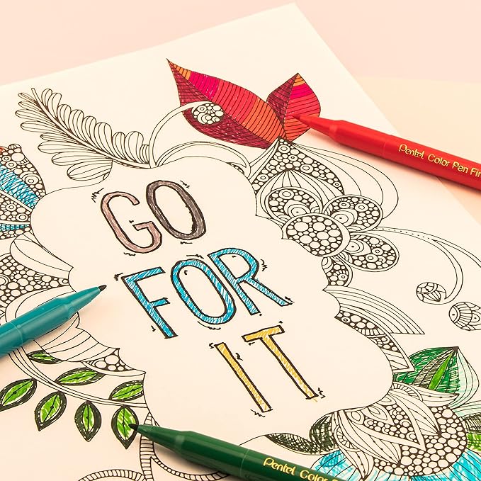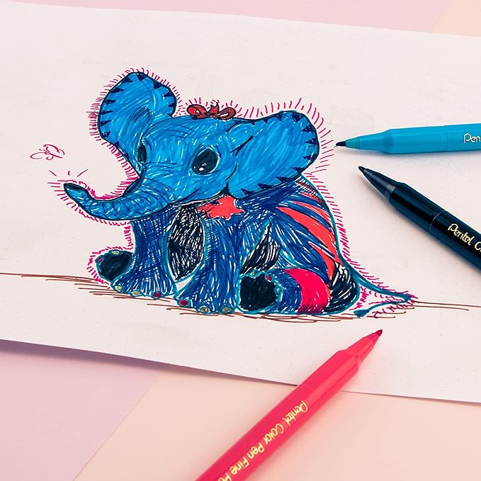Pentel Color Pen, Fine Point Color Markers, Fiber Tip, Assorted Colors, Set of 18 (S360-18) (Pack of 1, 18 Count Total)