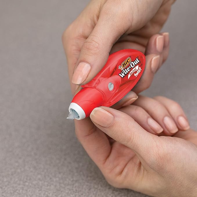 - One 2-count pack of BIC Wite-Out Brand Mini Twist Correction Tape, a tear-resistant, film-based white correction tape