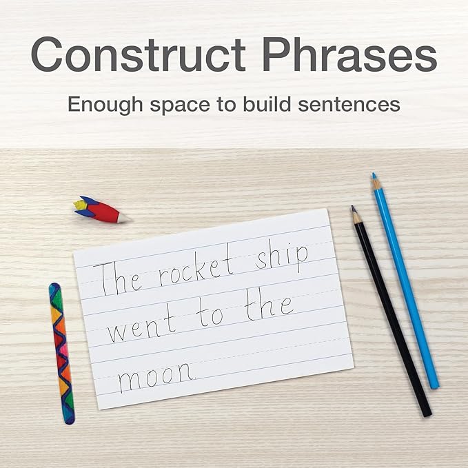 - White cards with black primary ruling; Makes it simple to write upper and lower case letters, teach penmanship and neatness