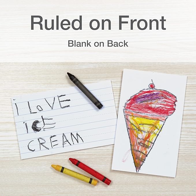 Oxford Primary Ruled Index Cards, 5 x 8 Inches, White, Lined on Front, Blank on Back, Kids Handwriting Practice Cards, Pre-K, K-2, 100 Count (46002)