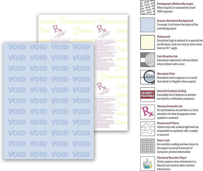 - The ultimate fraud fighter - DocuGard's medical security paper has up to ten layered features ensuring that your prescriptions and documents cannot be tampered with or accurately duplicated.