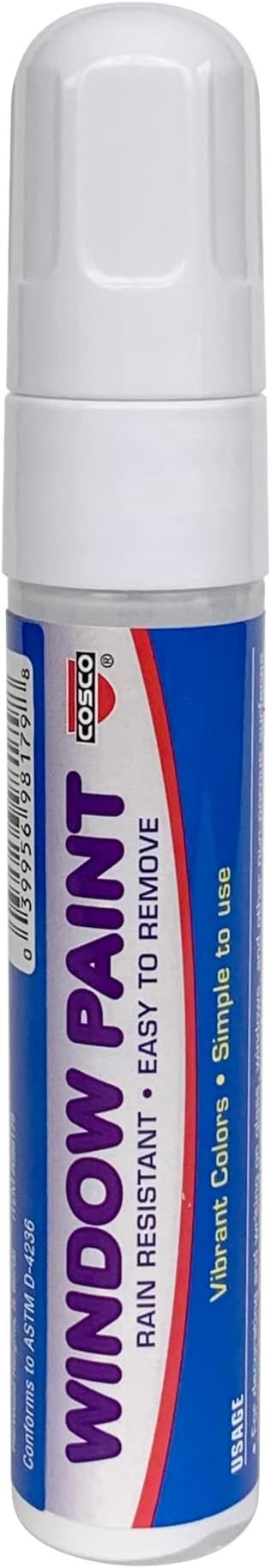 - Rain-Resistant and Removable: The paint used in the marker is rain-resistant, ensuring your creations stay vibrant and clear even in changing weather conditions. Plus, it is easily removable with a wet cloth, allowing for hassle-free clean-up and adjustments to your designs. Enjoy the fun and creative freedom with Cosco window paint marker, perfect for indoor or outdoor use on windows, mirrors, and whiteboards. Conforms to ASTM D-4236 for your peace of mind.