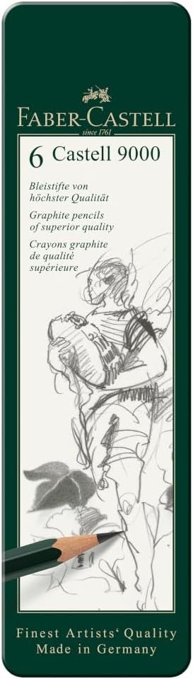 Faber-Castell 5 Piece Quality Water-Soluble Graphite Aquarelle Pencils in a Tin, Including HB, 2B, 4B, 6B and 8B, Grey