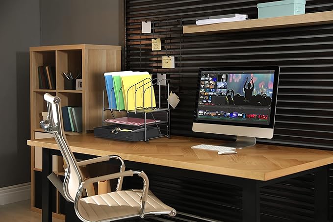- 5 upright sections to hold file or letter, each section is 2" W.