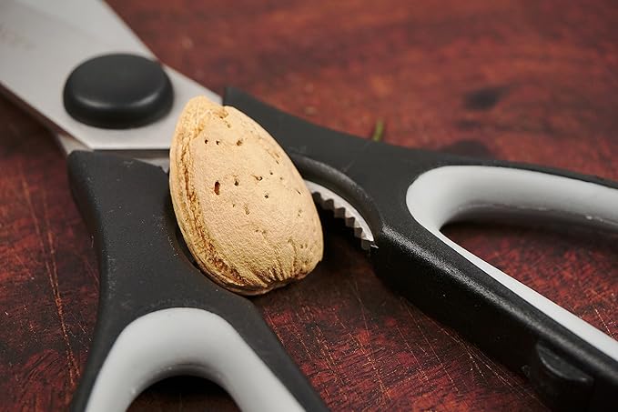 - FUNCTIONAL: In addition to cutting, these scissors feature a built in bottle and jar opener that can also function as a nutcracker