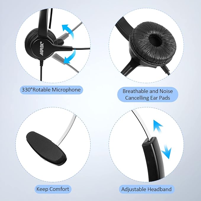 AGPTEK® Hands-Free Call Center Noise Cancelling Corded Monaural Headset USB Headset with Microphone for PC Headphone with Mic Mircrophone - Cord with USB Plug, Volume Control
