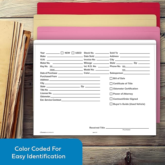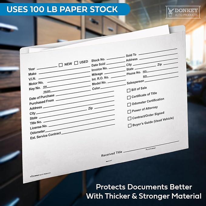 - Printed in black ink on shorter side of folder