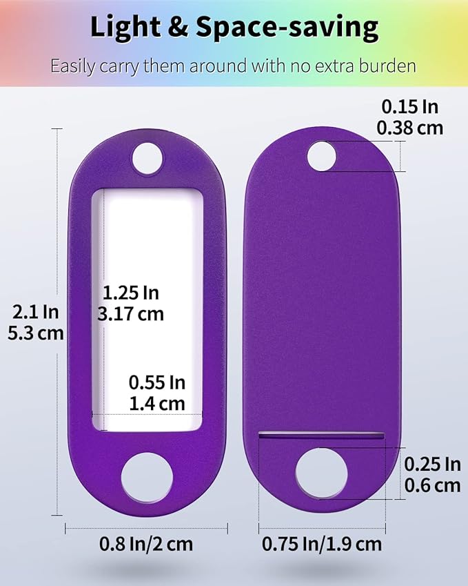 - 2 Tagging Methods: Easily slide out each label by bending the slit on the back or removing the keyring. Write and be sure to put them back after the ink dries completely to avoid smearing.