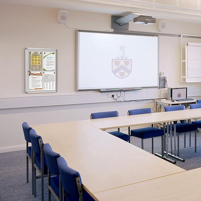 SWANCROWN Enclosed Bulletin Board Magnetic Dry Erase Noticeboard Lockable Display Boards White with Aluminium Frame 26x20inch(4xA4)