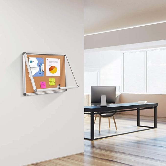 SWANCROWN Enclose Bulletin Board Tamper-Proof Dispaly Case School Office Cork Noticeboards for Information Photo, 38x28inch (9xA4)