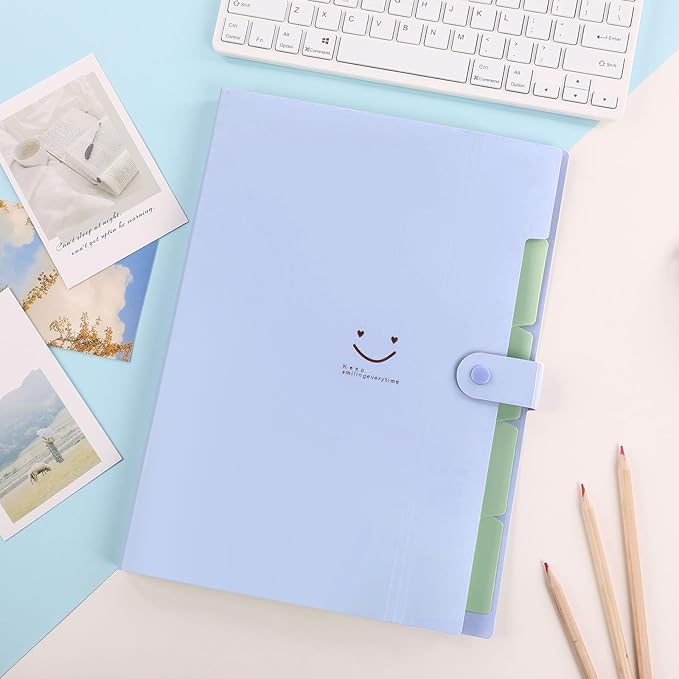 - Cute Solid Color Design. Expanding file folder has 5 expandable pockets. And tab positions for labels, organized