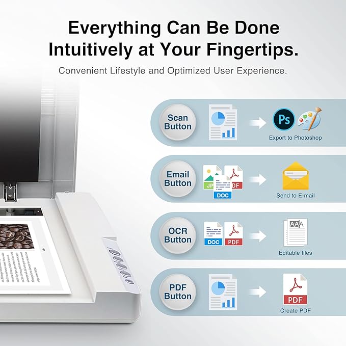 - Maximum Scan size - 11.7"x 17" (297 x 431.8 mm) Large Format Scanning, easy digital Tabloid or A3 size paper.