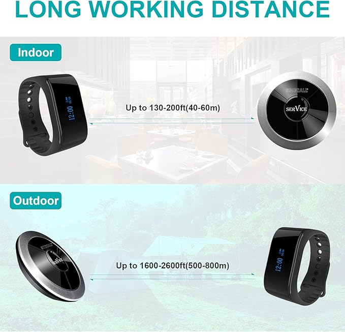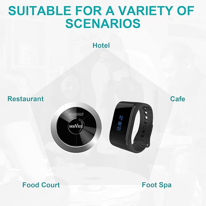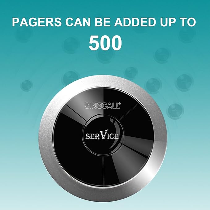 SINGCALL Wireless Calling System, Nurse Call System, 360 Degree Waterproof Pager Watch Receiver, No Screw Pager, Pack of 5 Pagers and 1 Receiver