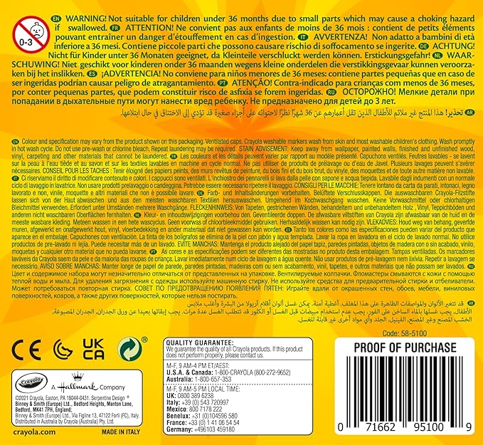- WASHABLE MARKERS: Crayola Washable Markers are specially formulated to wash from the skin as well as most fabrics used in children's clothing.
