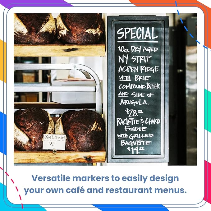 - Can Be Used On Many Surfaces - These perfect erasable chalk markers for blackboard can be used to write on wedding signs, shop storefront, milestone boards, menus, LED board, contact paper, mirror, car window markers, bistro chalk marker