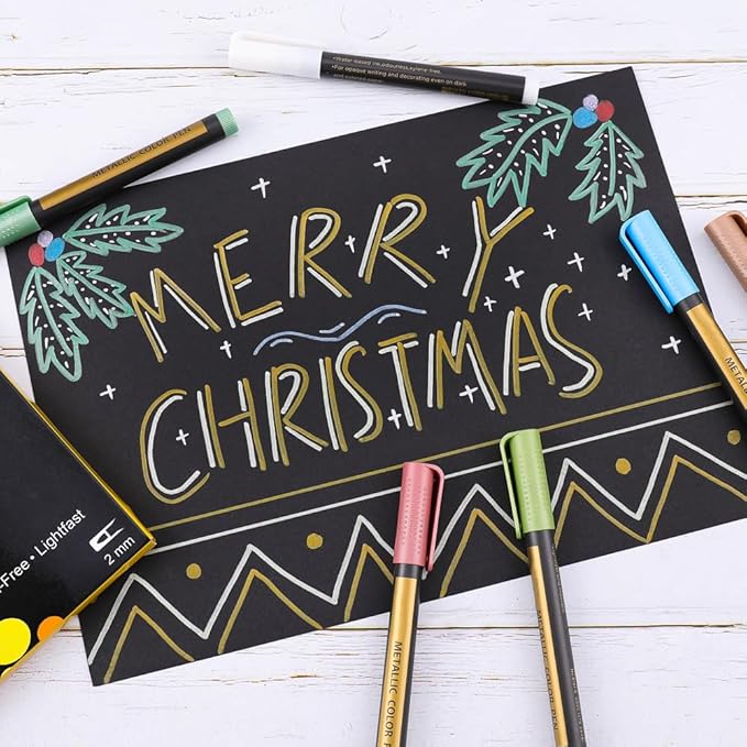 - Marks on Most Surfaces - Acid-free metallic markers for black paper, and work on most surfaces, such as ceramic, fabric, cardstock, rock, wood, and more. Unlike most metallic paint pens, you do not need to shake them when using our bright metallic markers