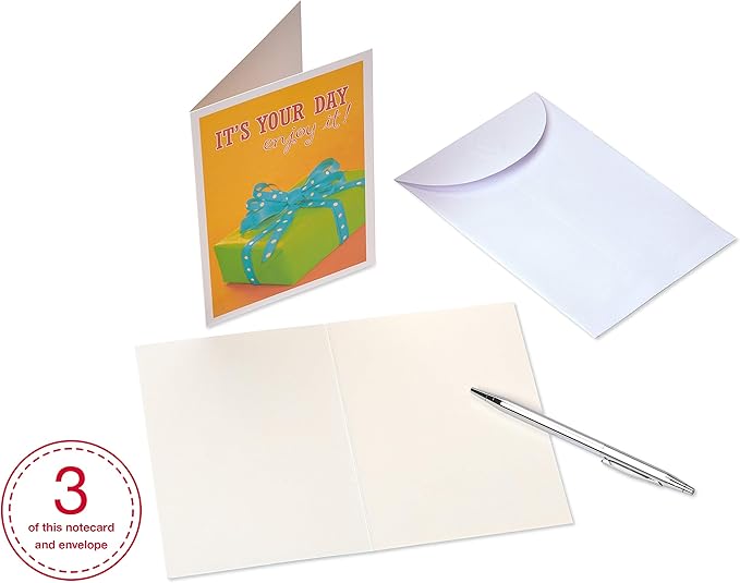 - This set of blank birthday greeting cards features bright and celebratory artwork on each cover to inspire you to write a personal congratulations on the blank space inside each card.