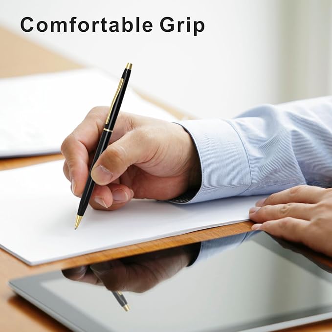 - Smooth Writing Metal Pen: The black gold pens delivers consistent ink flow for a smooth writing experience (approx writing length: 500 meters)