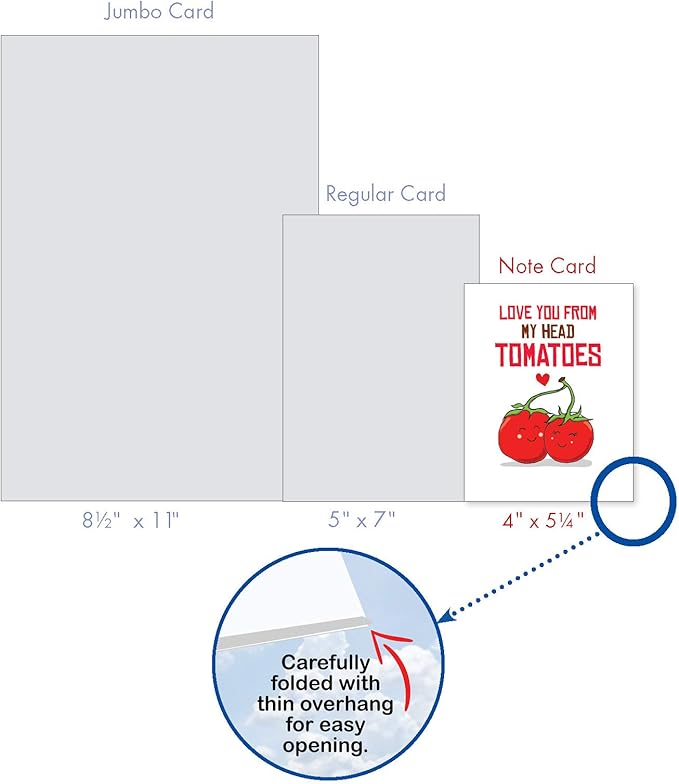 The Best Card Company - 10 Funny Assorted Blank Humor Notecards Box Set 4 x 5.12 Inch w/Envelopes Loving Cartoons for Men, Women (10 Designs, 1 Each) - Romantic Yummy Puns M5659OCB-B1x10