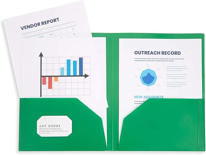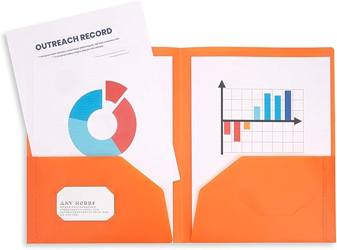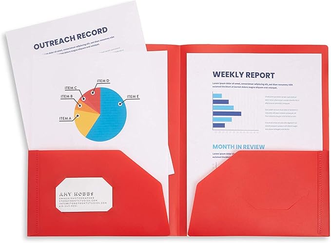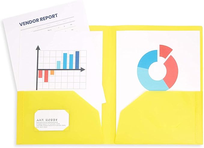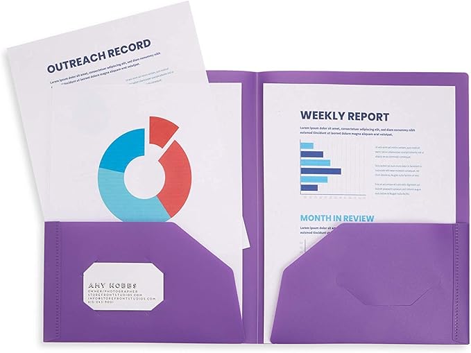 - Stay organized at school or at work with our 6 pack of multicolored two pocket plastic folders with business card slots