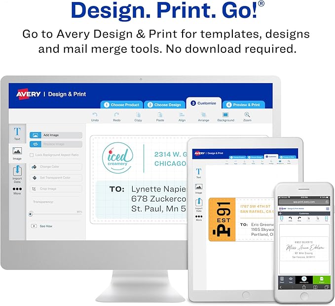 - Print your own personalized address labels, mailing labels, sealing labels, product labels and more using your own designs, art and text with Avery Design & Print
