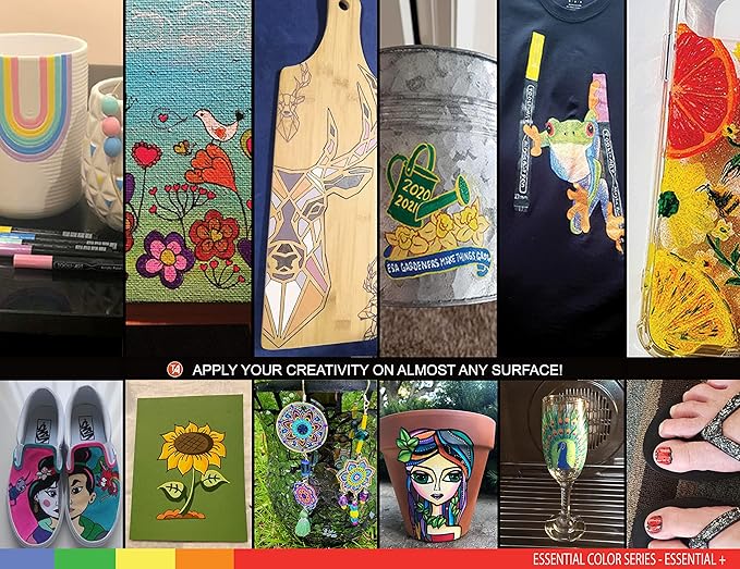 - ✔️MULTI SURFACE –The highly pigmented ink gives you nice opaque coverage on most surfaces such as stone, glass, wood, metal, fabric, porcelain, canvas, plastic, paper, cardboard, pottery, shoes, shirts, etc. The fade-resistant paint works great on dark and light surfaces. It dries quickly to prevent smudging.