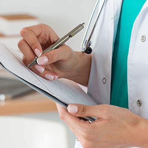 - 0.8mm fine point retractable ballpoint pen features a contemporary, stainless steel barrel that resists corrosion and is easier to sanitize than plastic