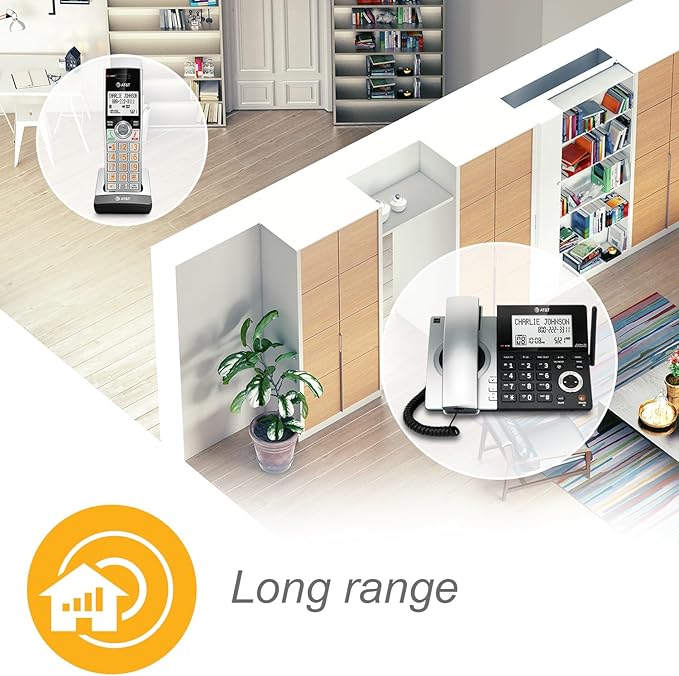 AT&T CL84107 DECT 6.0 Expandable Corded/Cordless Phone with Smart Call Blocker, Black/Silver with 1 Handset