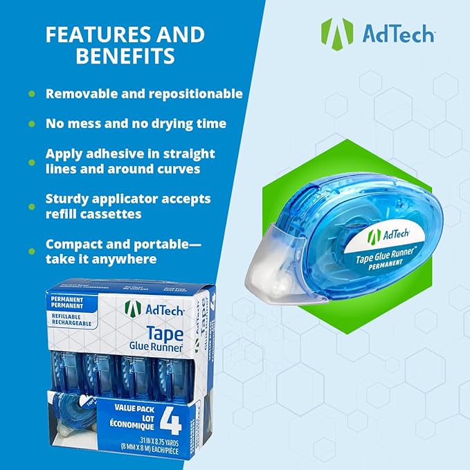 AdTech Glue Runner For Scrapbooking Supplies, case pack, Clear 4 Count (Pack of 12) cartridges,05603-CASE