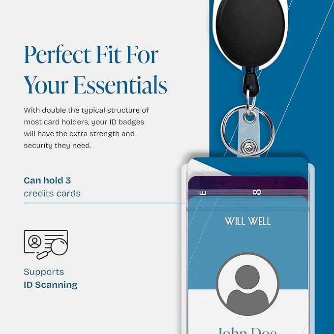 - 【Buy with confidence】 Comes with 5pcs premium vertical style clear ID card holders. Inner dimensions of name Card holder is 2.52" W x 3.58" L, each one can easily hold 3 credit card sized cards. Please don't hesitate to contact us via Amazon message system if at any time you aren't completely satisfied with your purchased.