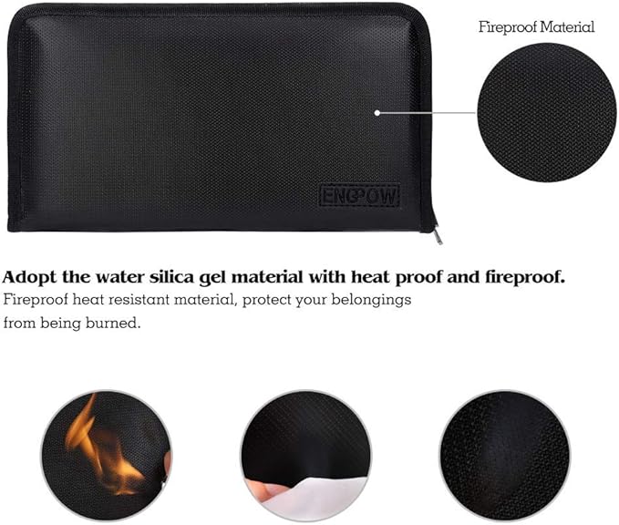 - Original Intention: Accidents happen when we least expect, and there’s nothing more devastating than a fire that takes away valuable paperwork, personal information, pictures or achievements.That’s why we developed the fireproof document bag- Protect your financials, personal information,document notebook, that won’t let you down when emergency strikes.