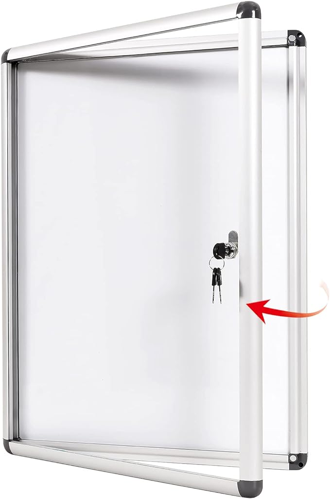 SWANCROWN Locking Bulletin Boards Enclosed Noticeboard White Glass Message Boards Indoor for School Office 38x28inch(9xA4)