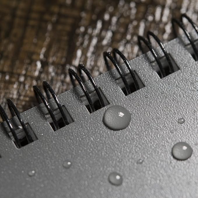 - WEATHERPROOF PAPER: 64 pages / 32 sheets per side spiral notepad. All-weather paper won’t turn to mush when wet and will repel water, sweat, grease, mud, and even survive the accidental laundry mishap. Make sure your pocket notebook stays RIGHT in the Rain.