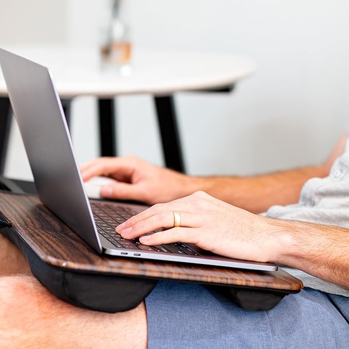 - Durable Surface: Work with confidence on our lap desk's solid surface, featuring an espresso woodgrain color, ensuring optimal air circulation to prevent your laptop from overheating.