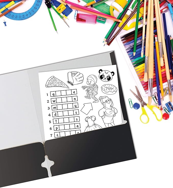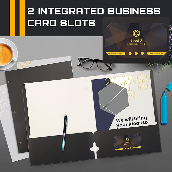 - 50-PACK: Black matte finish paper folders with 4" pockets. Easily holds 100 sheets (50/pocket) of letter size (8.5" x 11") paper/documents. But can even handle more.