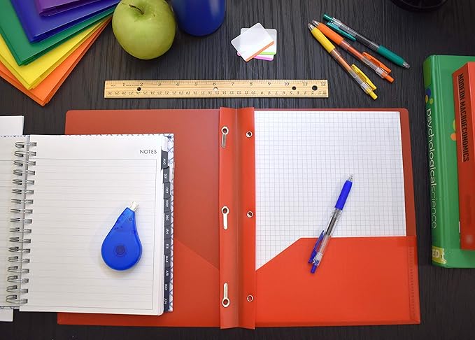 - Includes 3 letter size poly folders (9-3/4" W x 11-1/2" H) with two pockets and 3-hole punch prong fasteners, perfect for school paperwork, forms, and homework