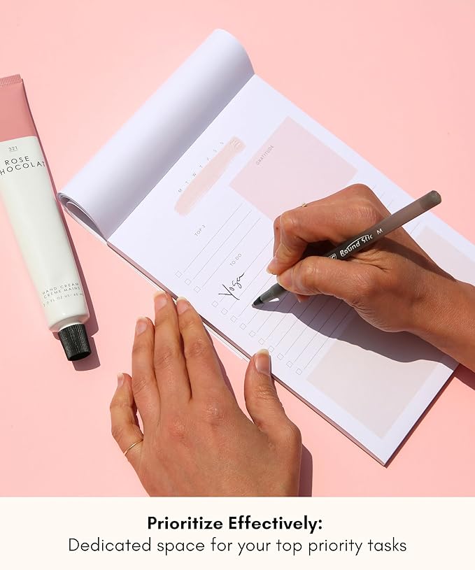 - Set your daily organizer for long-term success. Each sheet in this 50-page to do list pad includes 5 sections for planning your day: a To Do Pad for checking off your daily tasks, a Top 3 Section to prioritize your goals, a Gratitude segment to remind yourself what you’re thankful for, a Notes area for recording random thoughts & ideas, and a Self-Care daily checklist notepad to track your mental, emotional, and physical well-being.