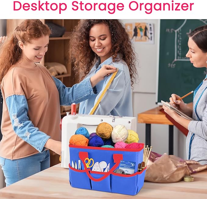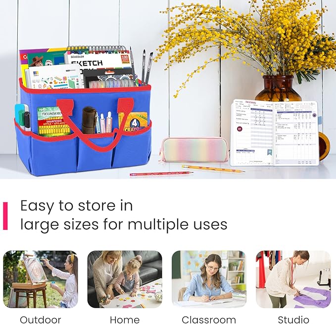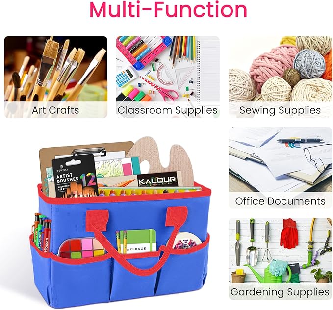 Godery Desktop Tote and Organizer, Teacher Helper Bag for Arts, Books, Stationery, Office Desk, Make-up Storage with Handles for Travel (BLUE)