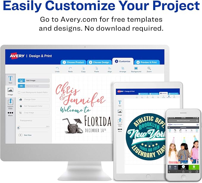 - Customize your adhesive wall decals with free designs and templates on the Avery site; compatible with both laser and ink jet printers