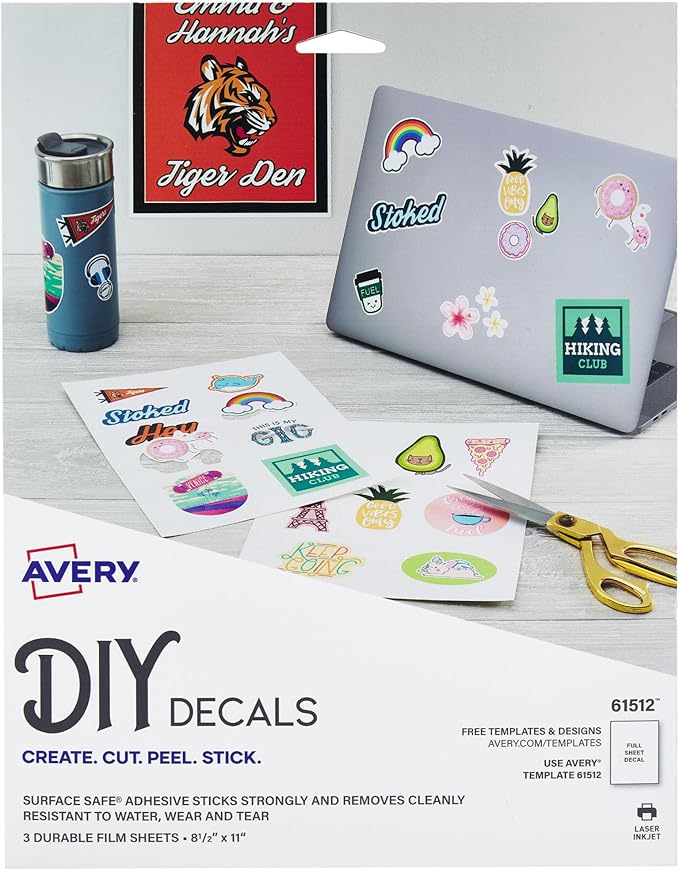 - Customize your adhesive wall decals with free designs and templates on the Avery site; compatible with both laser and ink jet printers