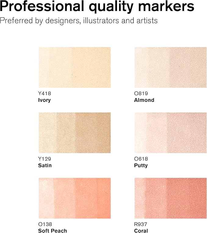 - Set contains Ivory, Almond, Satin, Putty, Soft Peach, and Coral.