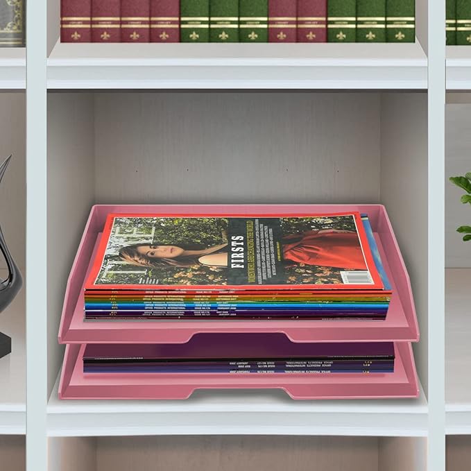 Acrimet Stackable Letter Tray 2 Tier Side Load, Plastic, Desktop File Organizer (Solid Pink Color)