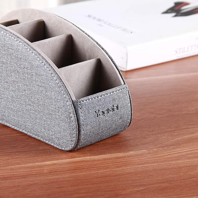 - MULTI-FUNCTIONAL: 5 compartments desk organizer to hold universal remote controllers for air conditioner, cable box, Roku, Apple TV, Amazon Fire TV, soundbars, mobile phone, small electronic media accessories, cosmetic, brush pen and glasses, pens/pencil and other office stationery
