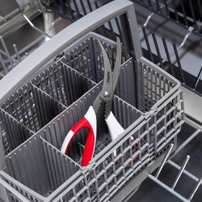 - DUAL-PURPOSE scissor with serrated blades as well as a built-in channel to crack more difficult shells on crab and lobster