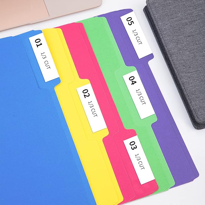 Amazon Basics File Folders, Letter Size, Heavyweight 1/3-Cut Tab Assorted Colors, 50-Pack